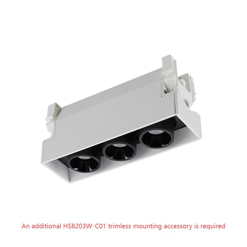 Kas is a range of mini-sized multiple lights with variousvariations. Kas-HS820W-PRO is the dual-axis adjustable andtrimless version. In this version, there are only 3 models - 3 units.5 units, and 10 units. The small size gives the ceiling a cleanerappearance, and the low glare level provides a comfortablelighting experience.it is an ideal choice for all types of indoorapplications.