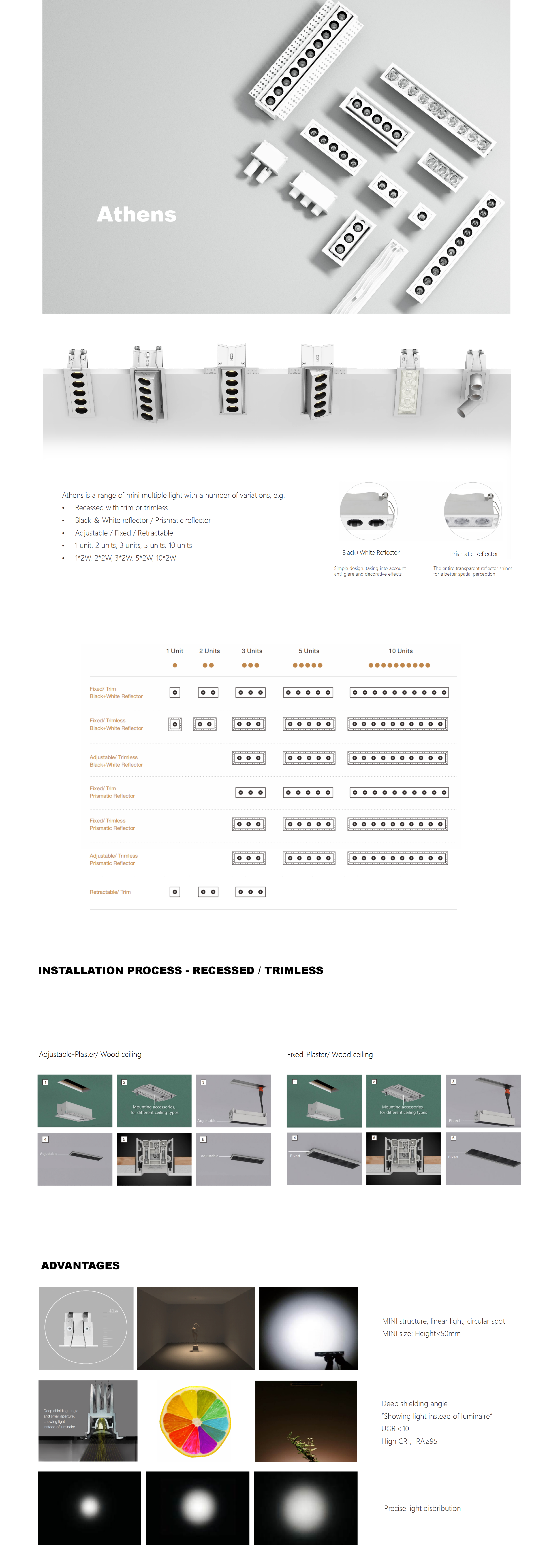 This is a special designed narrow trim version of athens, composed of 3 producets (1 unit, 2 units and 3 units) with 3 wattages.